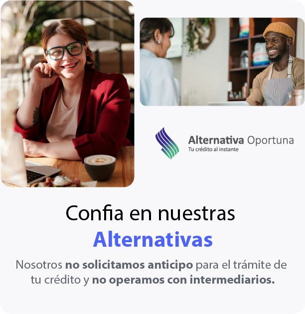 Esta es la única página oficial de Alternativa Oportuna SAPI DE CV SOFOM ENR en la cual podrá consultar información y contactarnos por medio de nuestros teléfonos y redes sociales, no se deje engañar por empresas que no estén cumpliendo la normativa de CNBV, CONDUSEF, BURÓ de entidades crediticias. Corroborar los datos de las instituciones financieras antes de solicitar un crédito.